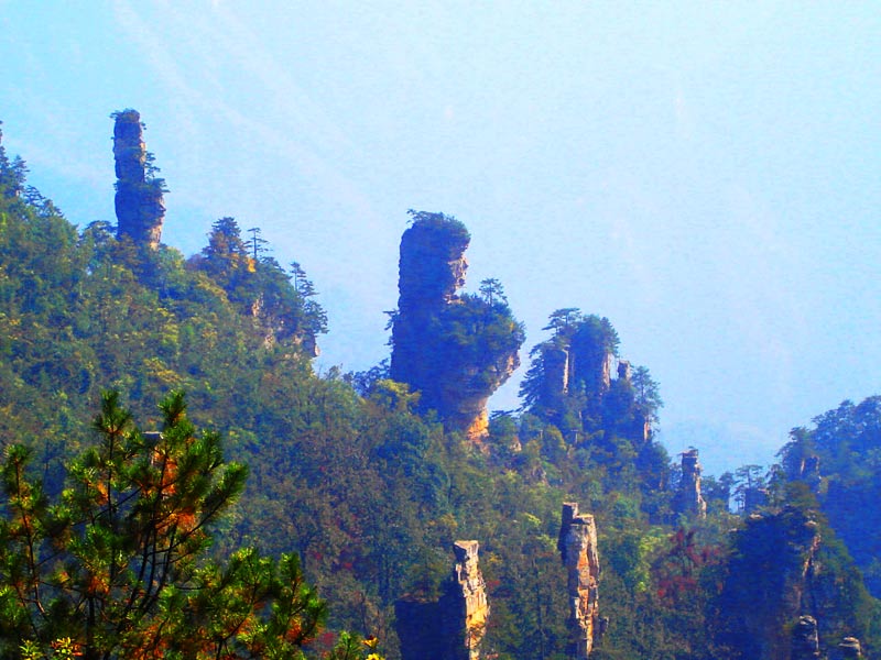 上 午: 遠(yuǎn)觀霧色百丈峽、踏入神秘的潘多拉世界,游覽張家界核心景區(qū)(門票已含)精品游覽線——【袁家界景區(qū)】(乘百龍?zhí)焯萆闲,門票72元/人已含):袁家界風(fēng)景以雄、奇、險、峻著稱,在十多華里的環(huán)山游道上,沿途景色美不勝數(shù),其中可觀賞到:電影《阿凡達(dá)》中“哈利路亞山”原型“乾坤柱”、迄今為止發(fā)現(xiàn)落差最高的天然石橋——天下第一橋(橋墩絕對高度354米)、九天玄梯、八卦圖、猿人望月、拜仙臺、迷魂臺、后花園等景點(diǎn);乘景區(qū)環(huán)保車(約40分鐘)前往游覽峰林奇觀--【天子山】:天子山被譽(yù)為峰林之王,千座山峰兀立云霧中、風(fēng)光旖旎、景色秀美,游覽天子閣、西海石林、御筆峰、仙女獻(xiàn)花、賀龍公園、石船出海、賀龍銅像等景點(diǎn)。